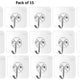 Self Adhesive Wall Hooks, Heavy Duty Sticky Hooks for Hanging 10kg (max), Waterproof Transparent Hooks for Wall (Pack of 15)